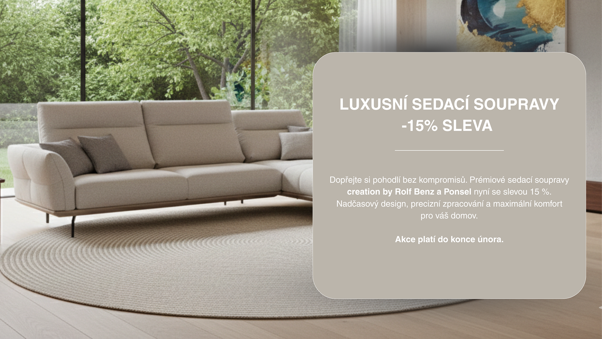 Sedací souprava je srdcem obývacího prostoru. Je místem odpočinku, setkávání i každodenního komfortu. Právě proto by její výběr neměl být kompromisem. V rámci naší aktuální akce vám nyní přinášíme možnost pořídit si prémiové sedací soupravy značek Ponsel a CREATION by Rolf Benz za zvýhodněných podmínek.