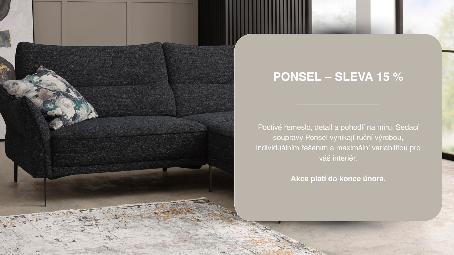 Ponsel je německá značka specializující se na výrobu kvalitního čalouněného nábytku s důrazem na pohodlí, styl a funkčnost. S více než 80letou tradicí se Ponsel řadí mezi přední evropské výrobce pohovek, křesel a sedacích souprav. Značka je známá svým pečlivým zpracováním a použitím vysoce kvalitních materiálů, které zajišťují dlouhou životnost a odolnost každého kusu nábytku.